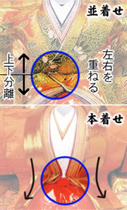 鳩尾(みぞおち)の辺りを見て下さい。 両側が重なってるかそうでないかがポイントです。