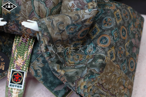 各ページ項目に記載の織物名称は、衣裳の仕立てに使用した織物を原材料として明示したものであり、弊社の固有商品名として使用しているものではありません。 項目毎の記載のあるなしにかかわらず、仕立ての素材に使用した各織物オリジナルの製品名、商標、意匠権等は各製造元または管理団体に帰属します。 |